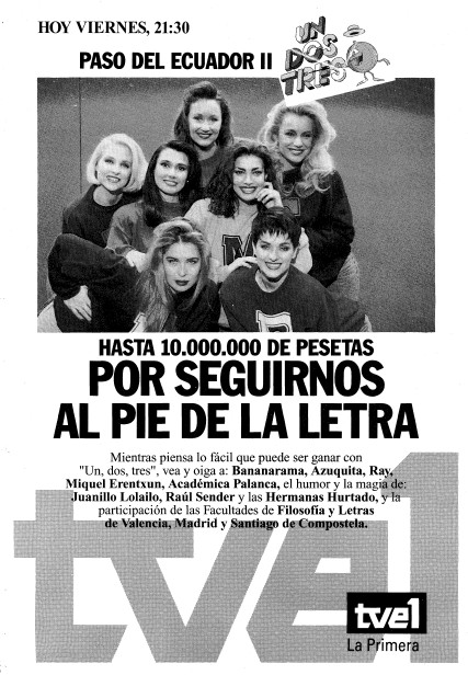 Inicio > Las etapas del «Un, dos, tres...» > La octava etapa (1992-1993) > Anuncios en la prensa > El paso del Ecuador: Facultad de Filosofía